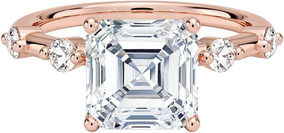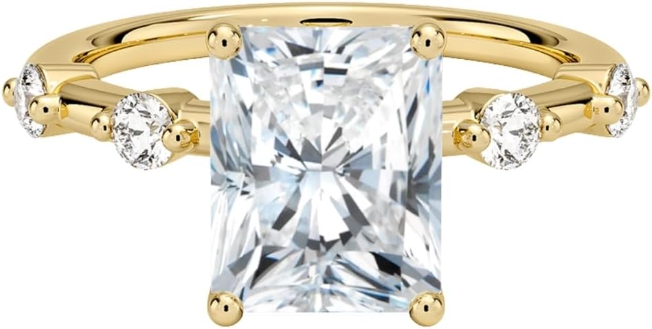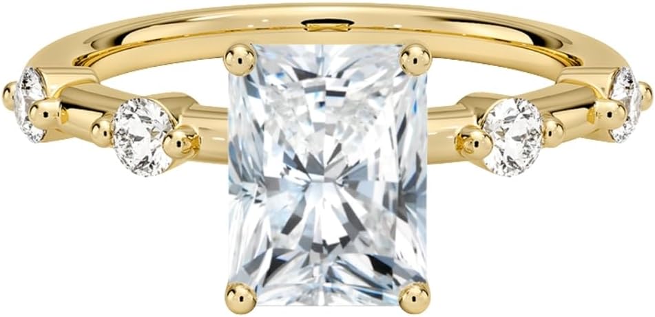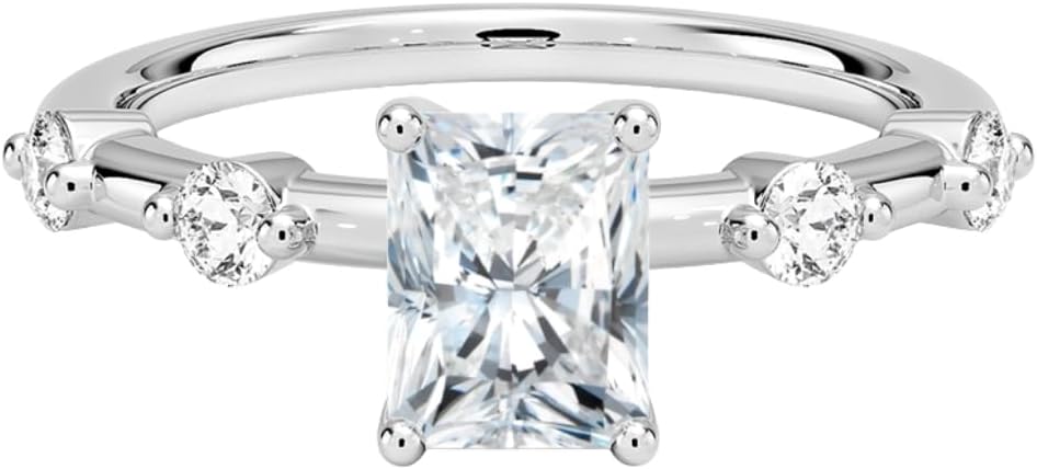 HK JEWEL Handcrafted with Precision & Love Moissanite Engagement Ring 1.7mm 5 Stone (1-5 CT)Asscher | Cushion | Emerald | Marquise | Oval | Pear | Princess | Radiant | RoundMake your proposal unforgettable with this handcrafted HK JEWEL engagement ring, designed with a brilliant center Moissanite. A timeless and luxurious ring perfect for engagement, wedding, anniversary, or promise gift. Ring Highlights✔ Handmade & Premium Quality✔ Available in 1 CT to 5 CT✔ Multiple stone shapes available✔ Choice of 925 Sterling Silver / 10K / 14K / 18K Solid Gold✔ Metal colors: Rose Gold / White Gold / Yellow Gold✔ Custom ring size available Production Method (Handcrafted)This ring is 100% handcrafted, made by skilled artisans.Each Moissanite is carefully cut, polished, and set for maximum sparkle and a luxury finish. Center Stone DetailsStone Type: Brilliant Cut MoissaniteShapes Available: Asscher, Cushion, Emerald, Marquise, Oval, Pear, Princess, Radiant, RoundCarat Options: 1 CT, 1.5 CT, 2 CT, 2.5 CT, 3 CT, 4 CT, 5 CaratColor Grade: E-F (Colorless)Clarity: VVS1-VVS2Luster: ExcellentMake: High Quality Side Stone Details (1.7mm 5 Stone Look)Stone Type: Round MoissaniteTotal Side Carat Weight: 0.22 CTColor Grade: E-FClarity: VVS1-VVS2Luster: ExcellentMake: High Quality Metal DetailsBrand: Designed by HK JEWELMetal Options: 925 Sterling Silver / 10K / 14K / 18K Solid GoldMetal Colors: Rose Gold / White Gold / Yellow GoldMetal Stamp: 925, 10K, 14K, 18KSetting Type: Prong SetBand Width: 1.70 MMRing Size: 3-12 US (Customizable)🌸 Design StyleThis ring features:✔ Three Stone Pave Engagement Ring✔ Trilogy Side Round Accent Solitaire Ring✔ Classic 3-Stone Pave Band Engagement Ring✔ Romantic Three-Stone Pave Ring🎁 Perfect Gift For💍 Engagement / Proposal❤️ Anniversary Gift✨ Wedding Ring💕 Promise Ring🎉 Birthday / Special OccasionA beautiful, sparkling, and timeless ring made to celebrate love with luxury.