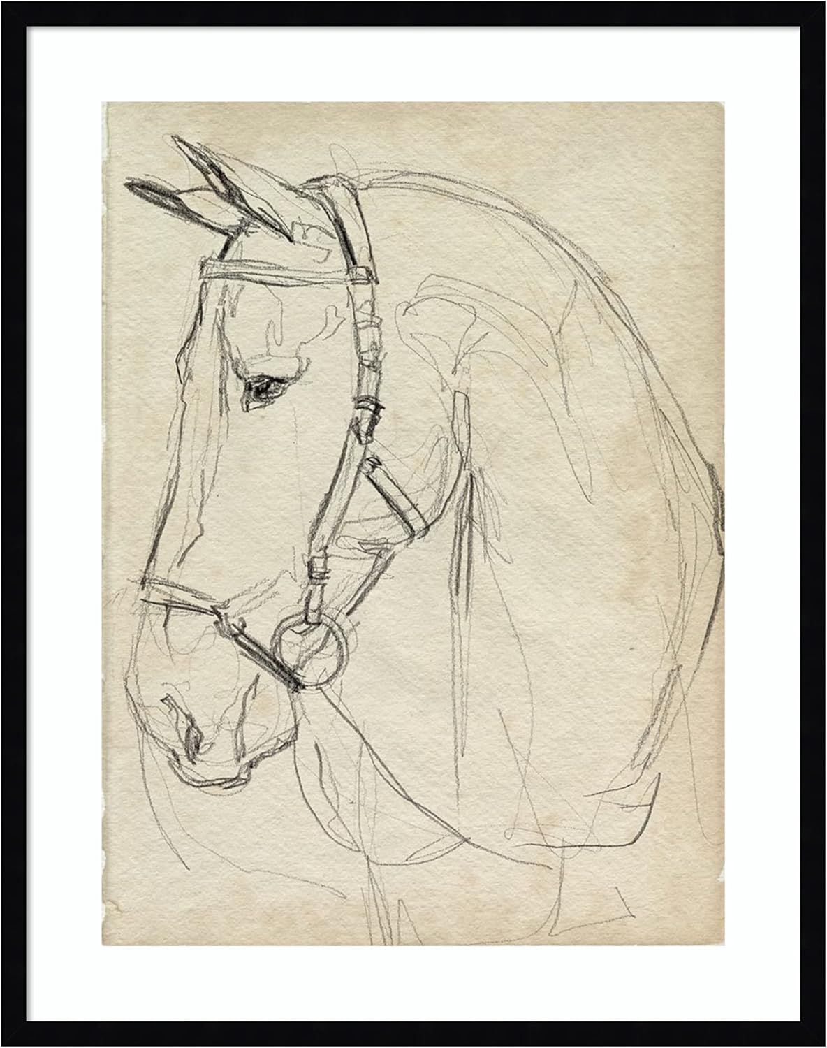 CANVAS ART DETAILS: Horse in Bridle Sketch II by Jennifer Paxton Parker. ARTIST BIO: Jennifer focuses on realism, figurative work, and portraiture. Once working in mainly graphite and pastel, she has expanded to watercolor and acrylic in a wide range of subject matter. DESCRIPTION: FRAME: Sylvie Maple. OUTER SIZE: 23 in. W x 30 in. H. The Sylvie Maple frame features a modern, float frame with natural maple woodgrain coloring and dramatic depth. This Amanti Art canvas art print was created by Jennifer Paxton Parker and printed by Amanti Art in Waunakee WI. The canvas is stretched by hand and finished with a float frame. Individually made using traditional custom framing techniques, it has the quality you would expect from your local frame shop. Because of our attention to detail and focus on artistry, architects, interior designers, and homeowners alike choose this framed canvas artwork to create beautiful living spaces.