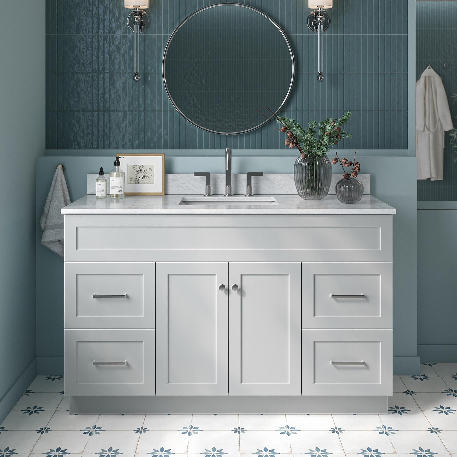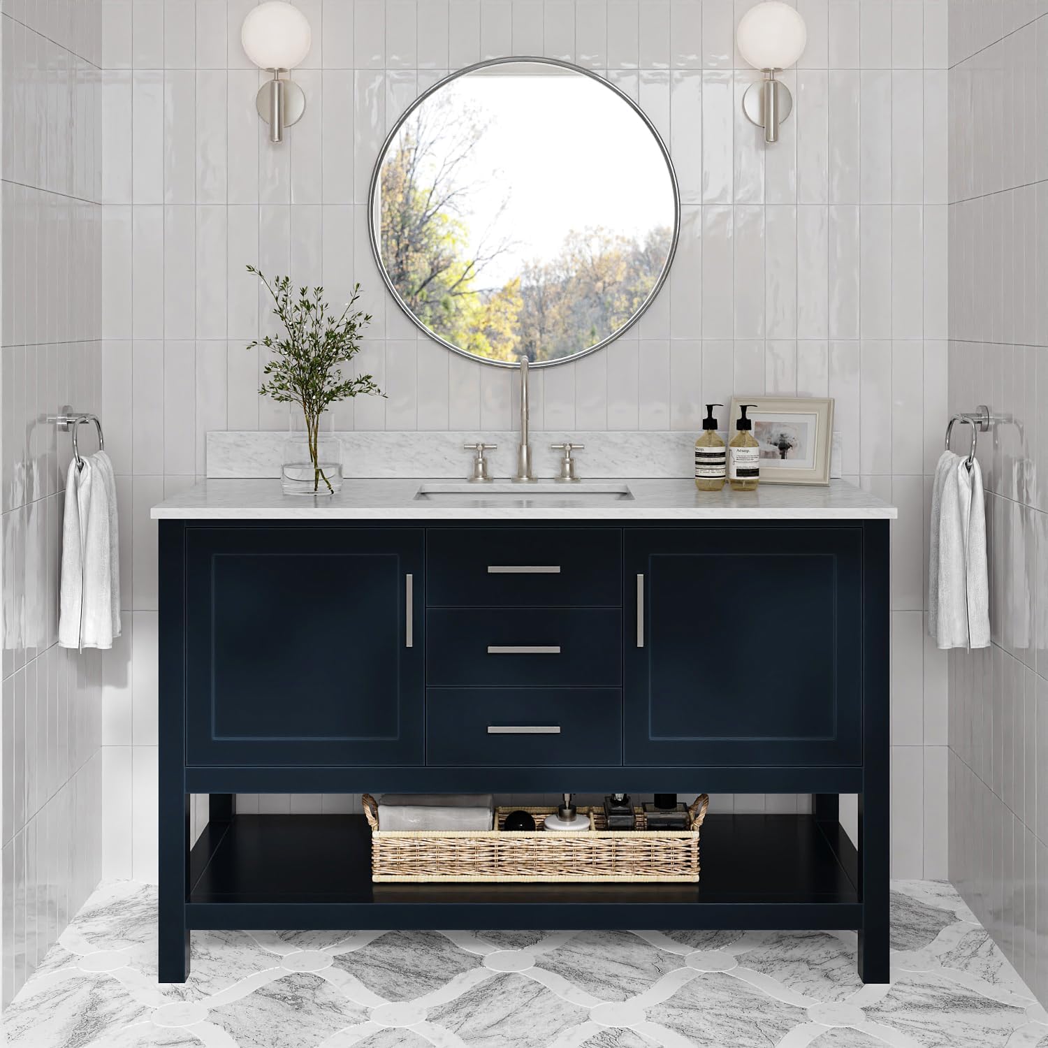 | Additional Features | Imported Italian carrara marble countertop,soft closing doors & drawers,dovetail construction,adjustable hinges, predrilled countertop for 3-hole faucet-8" inch widespread |