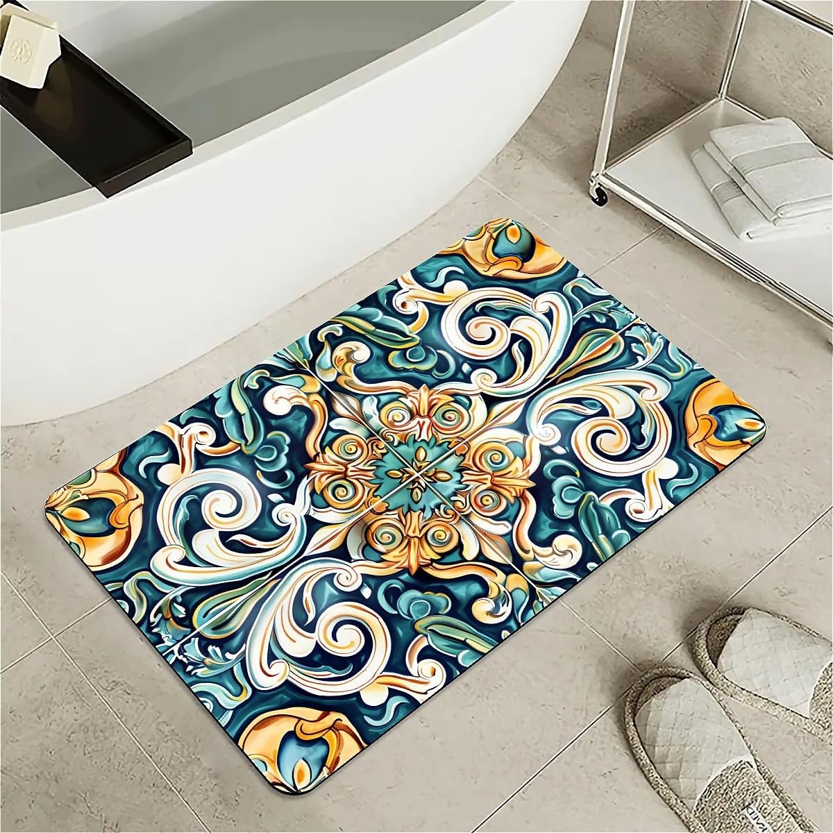 Features: [Beautiful pattern Design] Delicate pattern on a soft diatomaceous earth non-slip bath mat provides an artistical and relaxed feel to the bathroom.[Innovative Design]With the material of nano-level fiber, diatom mud latex mixture foam, as well as silicone rubber anti-skid foam, makes the rugs have upgraded absorption capacity. Meanwhile, it is no smell and no harm to health.this material is easy to clean and lasts for years.[Rubber Backing Technology] Super Water Absorbency Rug Mat Is Backed With Very Effective & Durable Rubber In Order To Prevent Skidding. The Rubber Backing Is Also Very Durable & Will Not Fall Off In The Washer Or Dryer. Prior To Placing The Rug On The Floor, Please Ensure The Floor Underneath The Rug Is Clean And Dry. Do Not Place The Rug On Wet Floors.[Multifunction] Apart from using it in the bathroom, it can also be used in your bedrooms, kid's room, laundry rooms, restaurant, hotel, banquet, wedding party as a doormat. Perfect bathroom gift for friends and family! [Keep Your dog and cat Area in Safe and Hygine]Whether you were annoyed by the wet residue or footprint on the floor during your cute doggy or kitten feeding time? You will love the fast drying, stain-resistant, and super absorbent rugs.Tips:Do not place it on sharp objects.