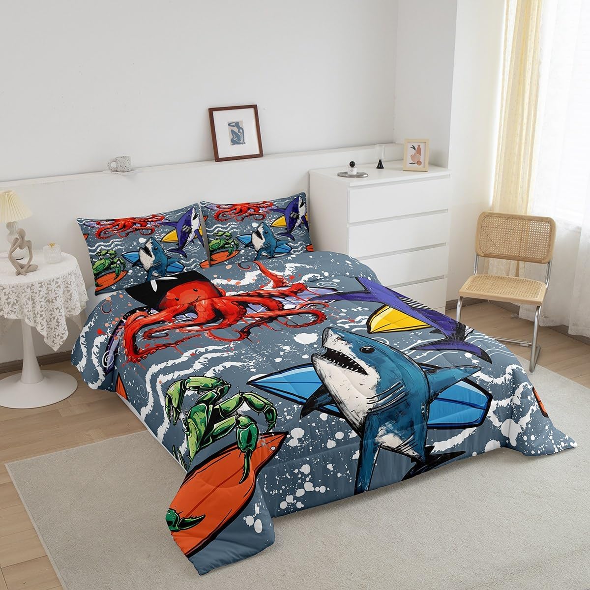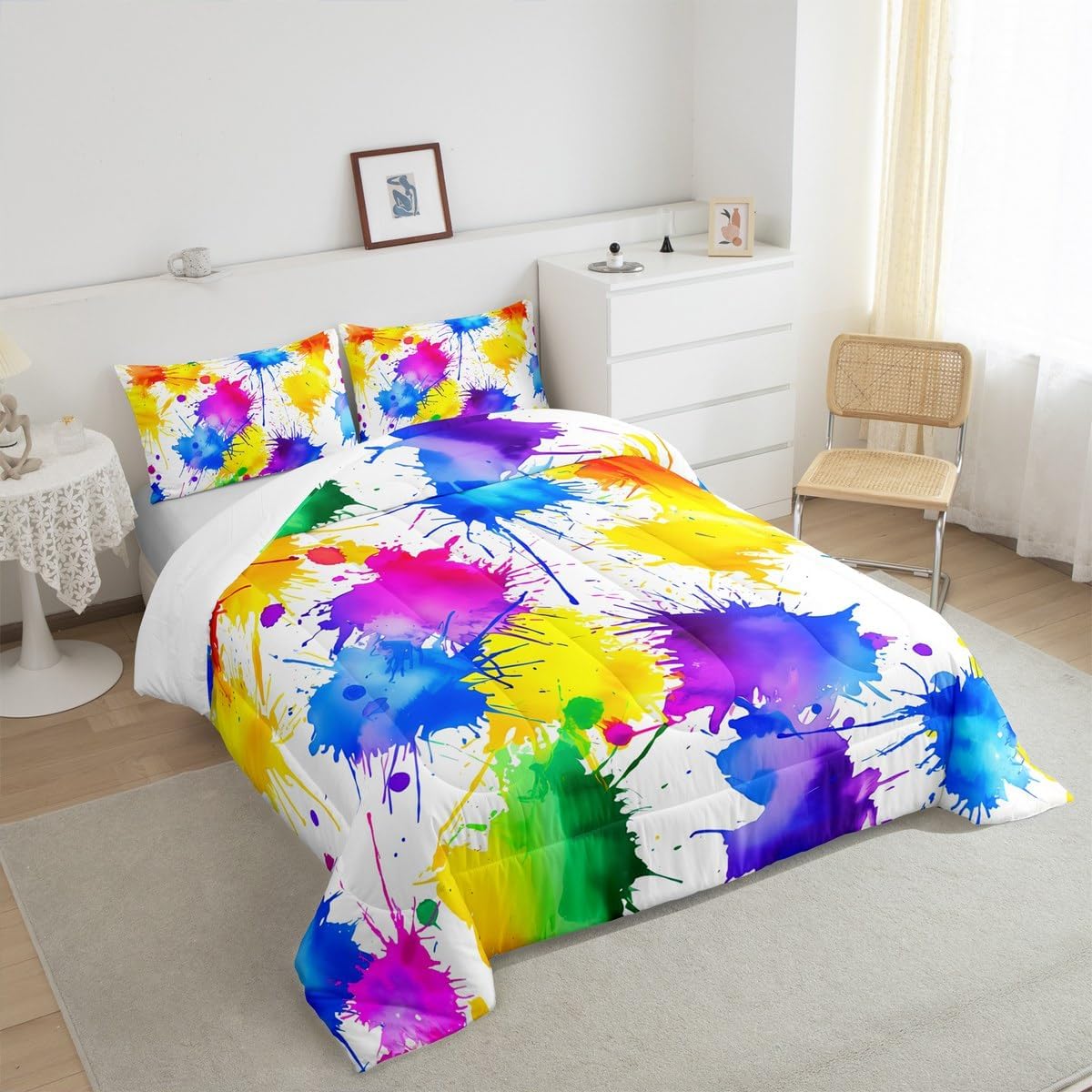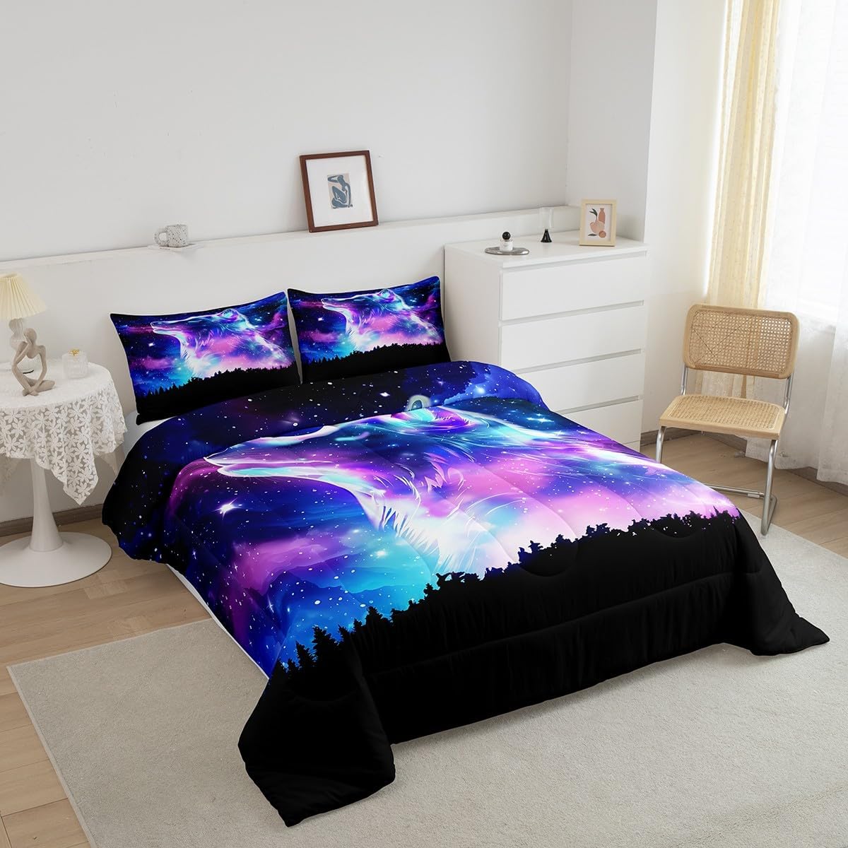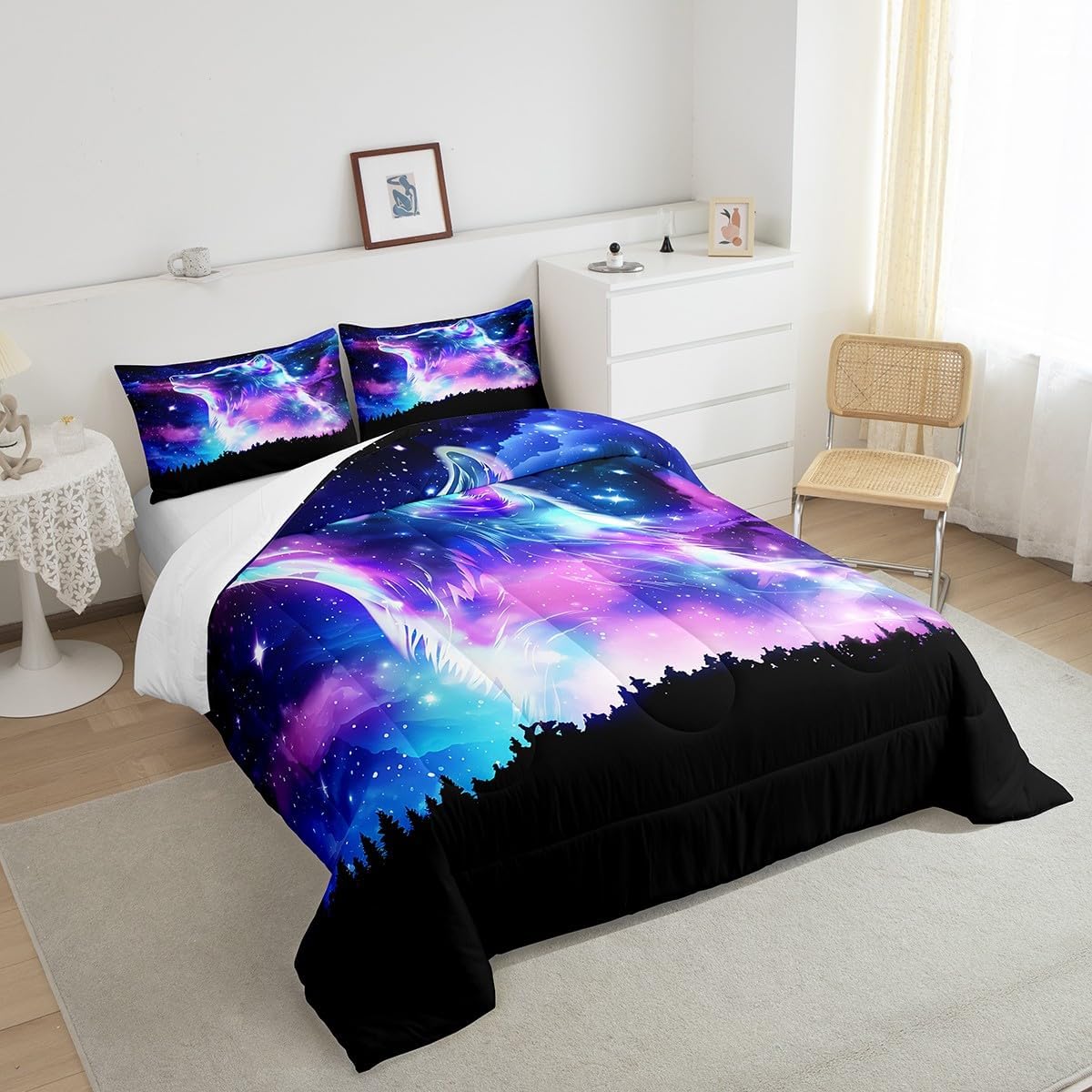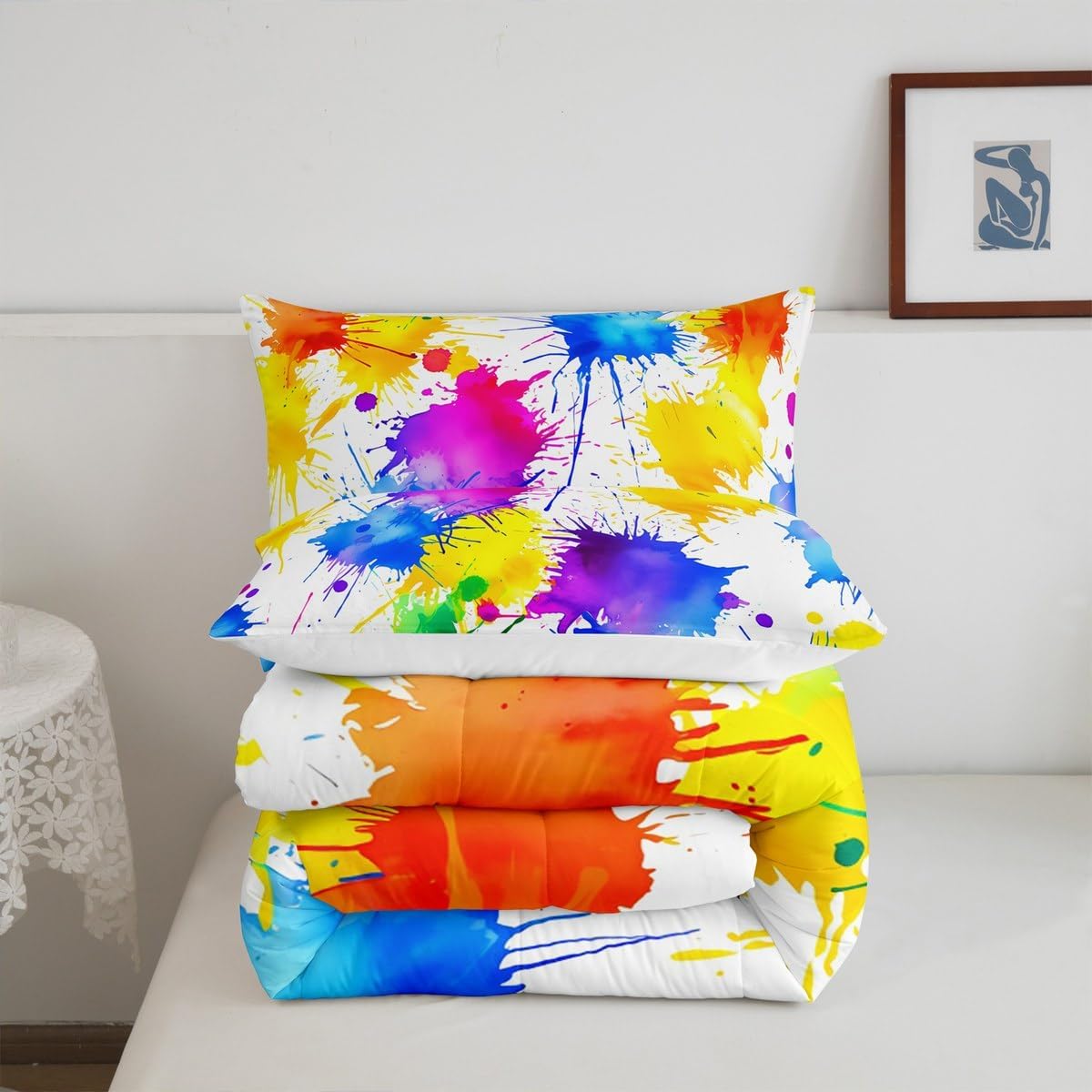Makeover your bedrooms every season with our comforter sets; good item for your room, girls boys youth room, master bedroom Also a great decoration idea for your mom, dad, sister, brother, grandma, wife, husband, daughter, son and all other beloved Size Information:1 Twin size comforter 68" X 90" and 1 pillowcase 30" X 20"1 Full size comforter 79" X 91" and 2 pillowcases 30" X 20"1 Queen size comforter 90" X 90" and 2 pillowcases 30" X 20"1 King size comforter 104" X 90" and 2 pillowcases 36" X 20"Useful and practical: A practical product for homes, dorm rooms, hotels, guest rooms. Comfortable to use for being polyester which is soft and breathable Unique design:Vivid colors and clear printed with digital printing. These unique designs match well with various color of your rugs, curtains, headboard, furniture, and all other decor accessories Characteristic:As manufacturers of digital printed home textiles, we follow current trends and bring you new home fashion Either a comforter to your family or friend, relative or boyfriend girlfriend, or to yourself, the item should be interesting and authentic Note:The comforter and pillow cases are printed on the front side only, the back of them are white colored
