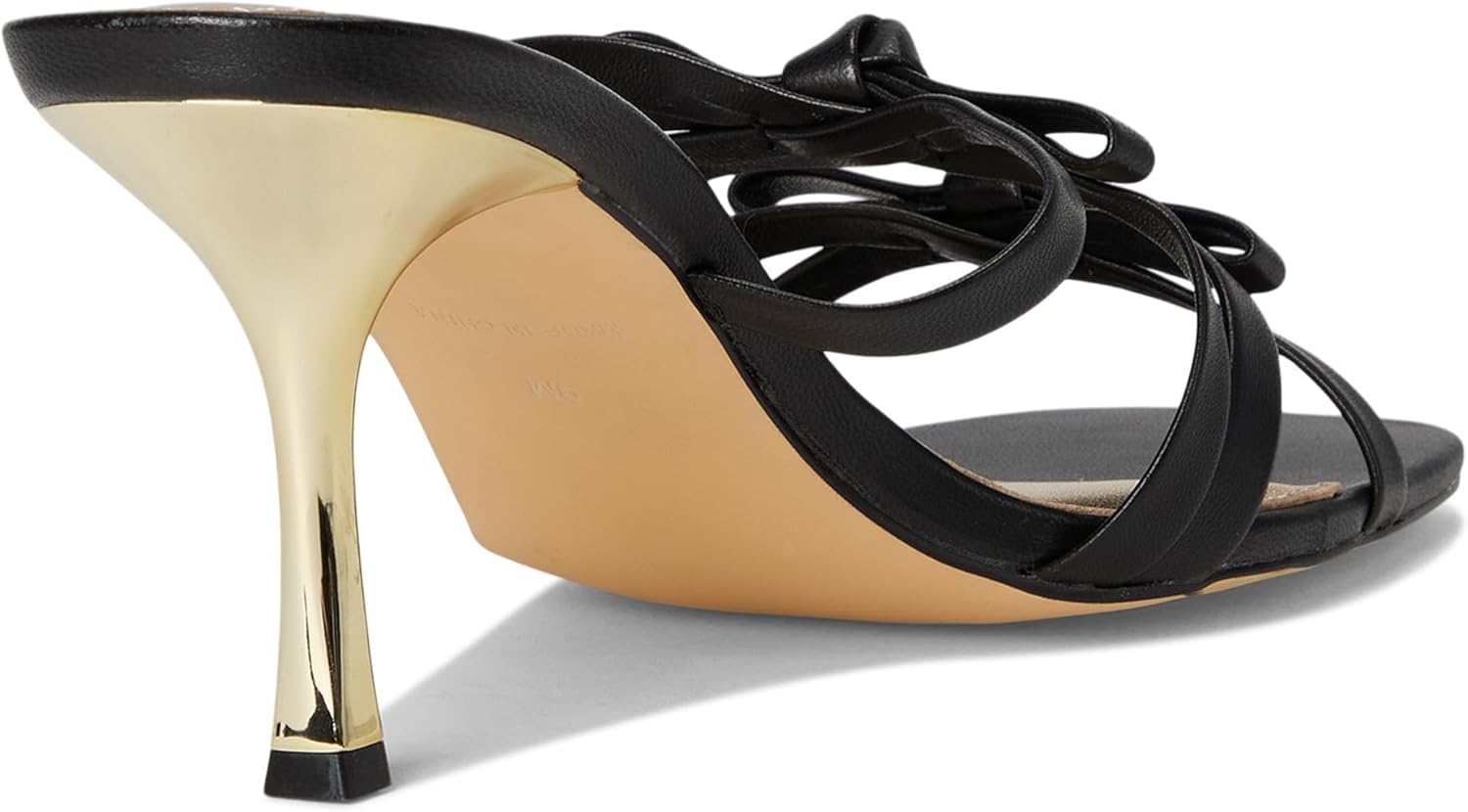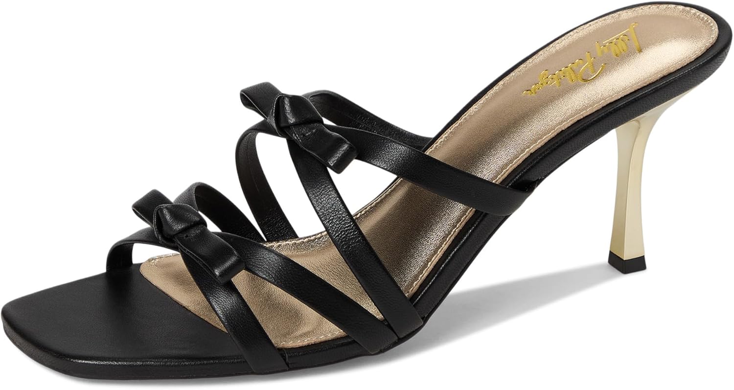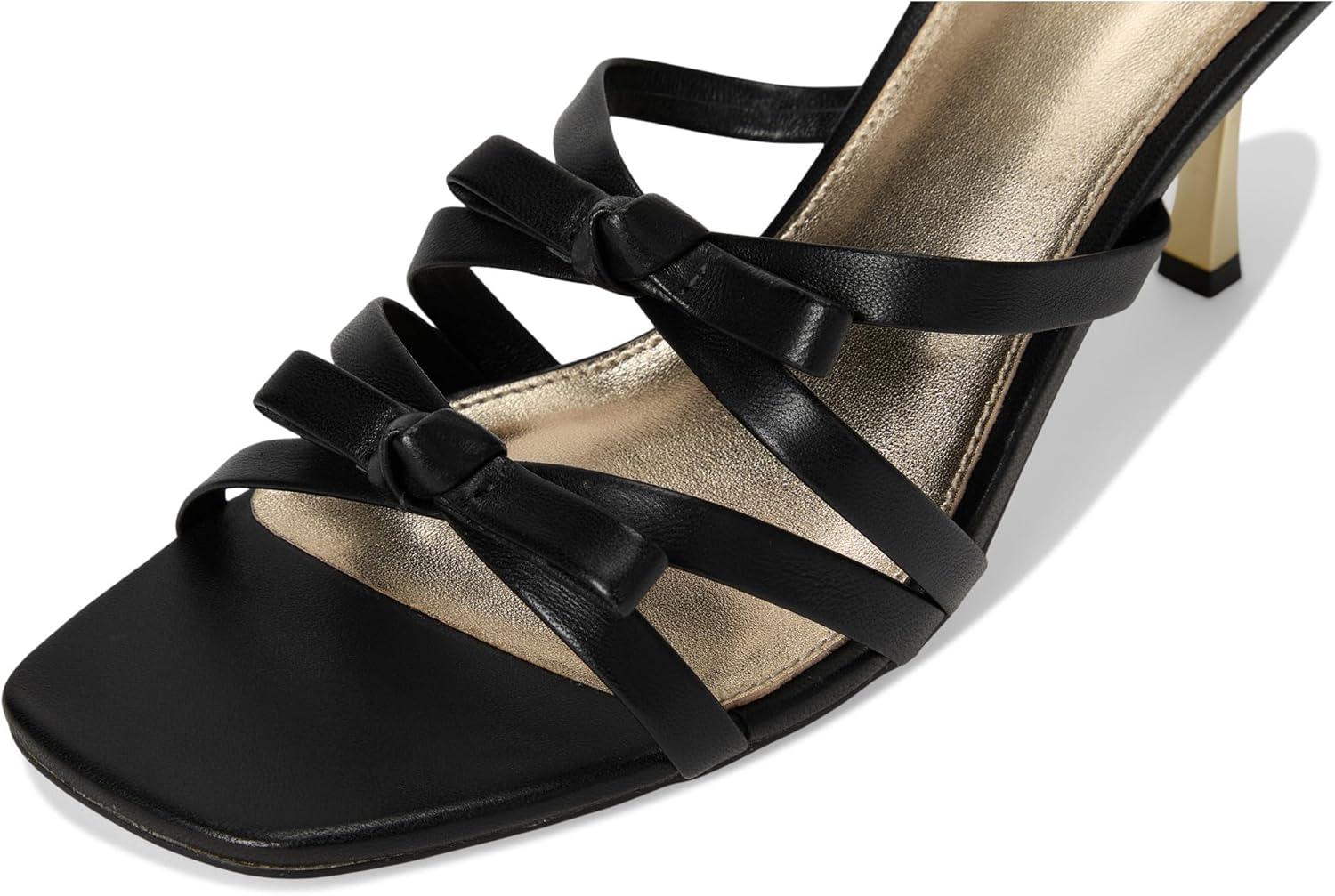 Nappa perlato leather strappy slide sandal with bow details and gold electroplated 3" heel. 5MM LP Plush padded footbed.