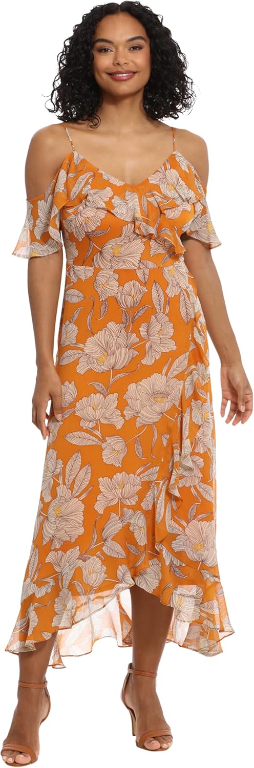 | Item Type Name | London Times Women's Dresses Ruffle Cold Shoulder Hi-Low Dress |