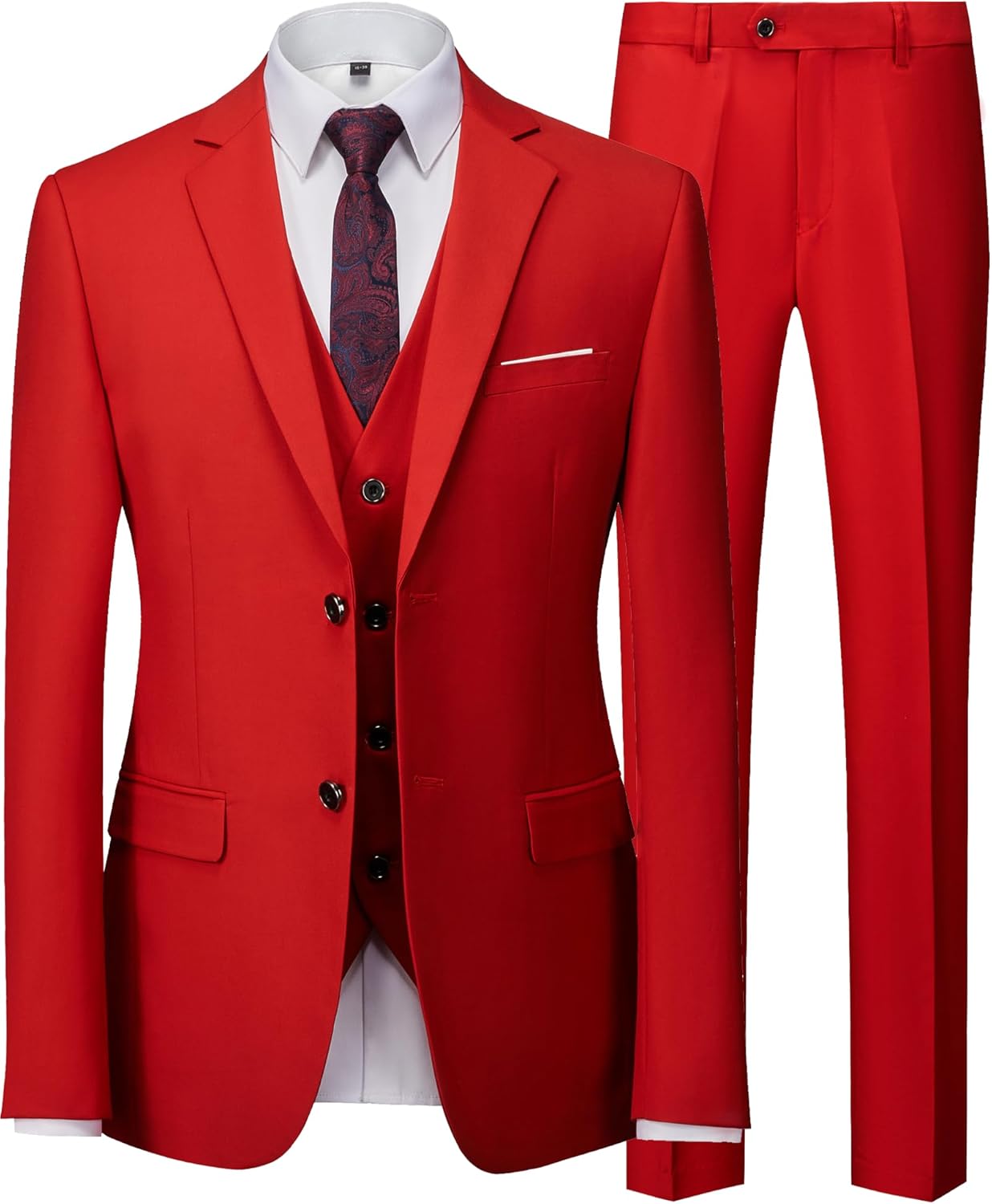 Product Specifications: Brand Name:Yonsensman Style Type:Men's 3 Pieces Suit Set Solid Two Button Slim Fit Party Prom Business Wedding Jacket Blazer Vest Pants with Tie Size:XS/S/M/L/XL/2XL/3XL Fit Type: Regular Fit Collar: Closure Collar Package Contains:: 1* Blazer Jacket+1* Waistcoat+1* Pants Occasions Advise: Daily wearing, Wedding Party, Birthday Party, Dinner Party, Prom Party,Back to School Party. Size Suggestions: yPlease make sure the body chest is at least 2-3 inches smaller than the chest of the jacket and the body size should be smaller than the size of the jacket in all parts to have enough redundancy. Costume care recommendations:y Dry cleaning is recommended; do not bleach; dry in a straight line; iron low, if necessary, before wearing; hang on to clothes when not wearing.