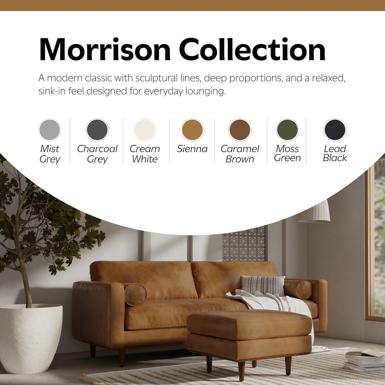 If you’re furnishing a new home or looking to refresh your living room, the Morrison 89-inch Sofa and Ottoman 2-Piece Set is a smart choice. The luxurious comfort extends from the leather couch for 3—with a single bench cushion, 2 loose back cushions, and 2 bolster pillows—to the matching ottoman. Both pieces are handcrafted with premium materials to offer outstanding support and durability.