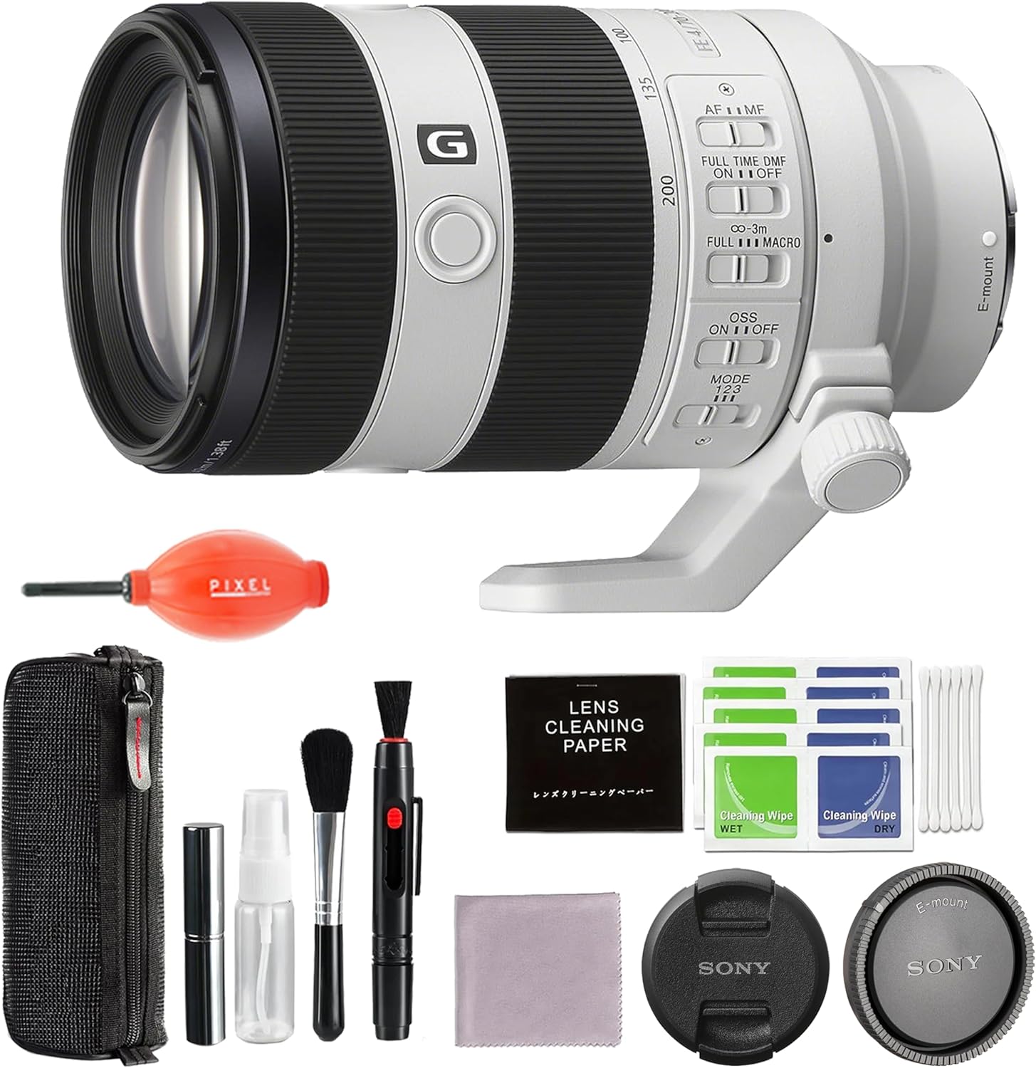 Included with the Sony FE 70-200mm f/4 Macro G OSS II Lens (Sony E) Sony FE 70-200mm f/4 Macro G OSS II Lens (Sony E)Sony ALC-F72S 72mm Front Lens CapSony ALC-R1EM Rear Lens CapALC-SH176 Lens HoodLimited 1-Year Manufacturer WarrantyAlso Included in this K&M Bundle are:Sony FE 70-200mm f/4 Macro G OSS II Lens | Sony E72mm UV FilterLens Cap KeeperCleaning Lens Pen5-Piece Camera & Lens Cleaning Kit with Blower Brush, Fluid, Cloth, Tissues & TipsMicrofiber Cleaning ClothKey Features of the Sony FE 70-200mm f/4 Macro G OSS II Lens (Sony E)G Series Telephoto ZoomInternal Focus, Floating Elements Design10.2" Minimum Focusing Distance at 70mmOptical SteadyShot Image Stabilization15% Shorter and Lighter than PredecessorAdvanced Aspherical, Super ED ElementsNano AR Coating IIOverview of the Sony FE 70-200mm f/4 Macro G OSS II Lens (Sony E) Nine years in the making, Sony has retooled their classic, workhorse telephoto zoom lens with the FE 70-200mm f/4 Macro G OSS II, introducing performance upgrades in autofocus, stabilization, magnification, and sharpness while reducing both its length and size. Remaining a portable, workaday stalwart for events, sports, and portraiture, this latest iteration expands its capabilities into video and macro applications.